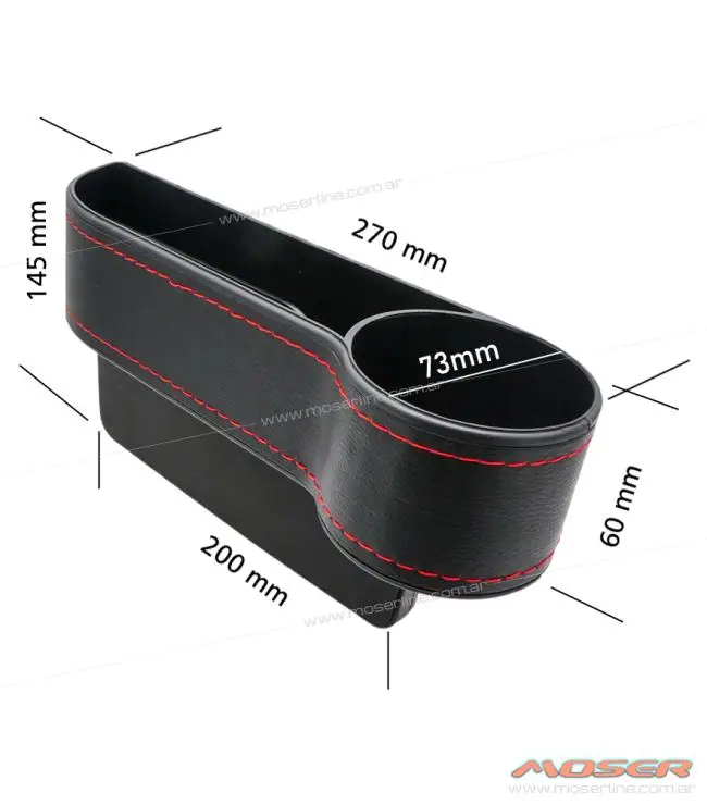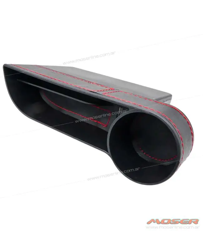 Organizador para Auto Entre Butaca y Consola con Posa Vaso, Revestimiento de Cuero y Costuras Rojas